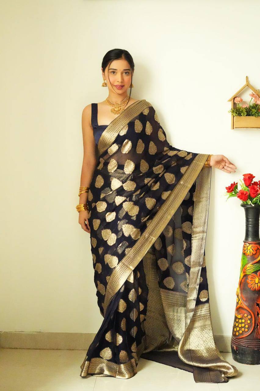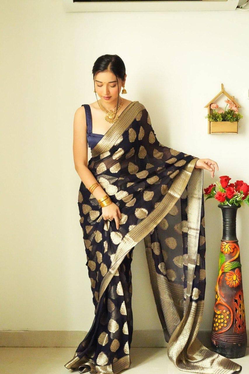 Black Colour 1-Min Cotton Silk Ready To Wear Saree With Blouse Piece