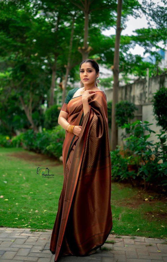 Brown Colour Kanjivaram Woven Silk Saree With Blouse Piece