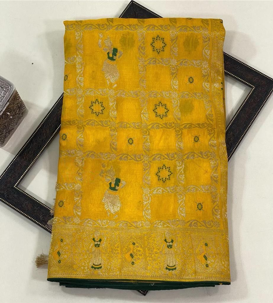 Dola Silk Weaving Saree With Rich Zari Woven Pallu With Fancy Tassels