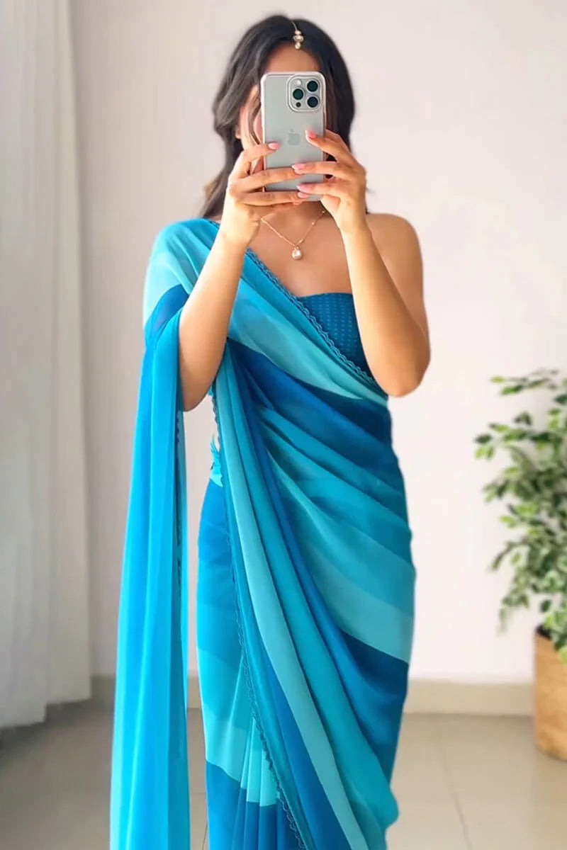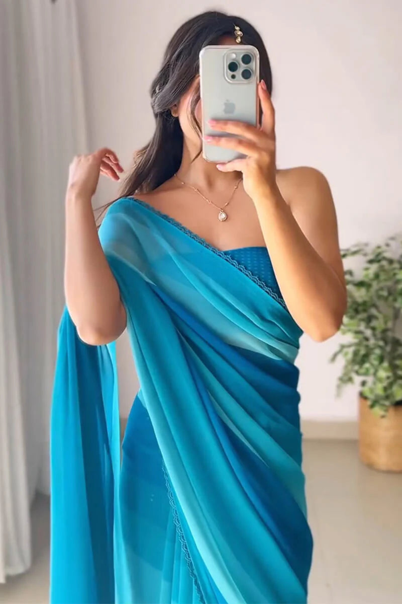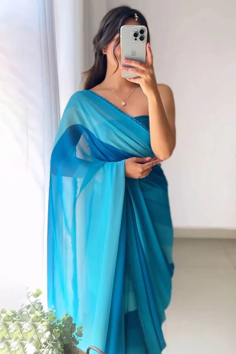 Marvellous 1-Minute Ready To Wear Firozi Georgette Saree
