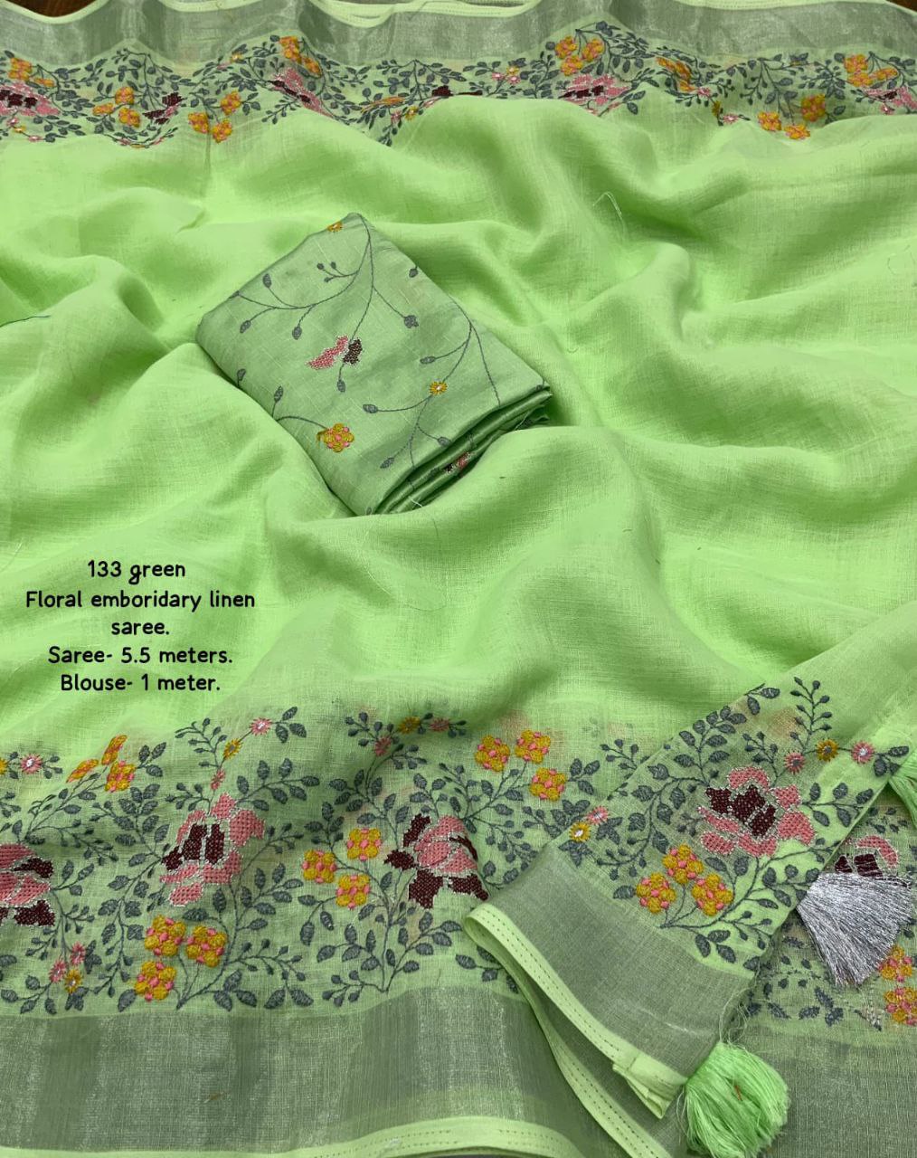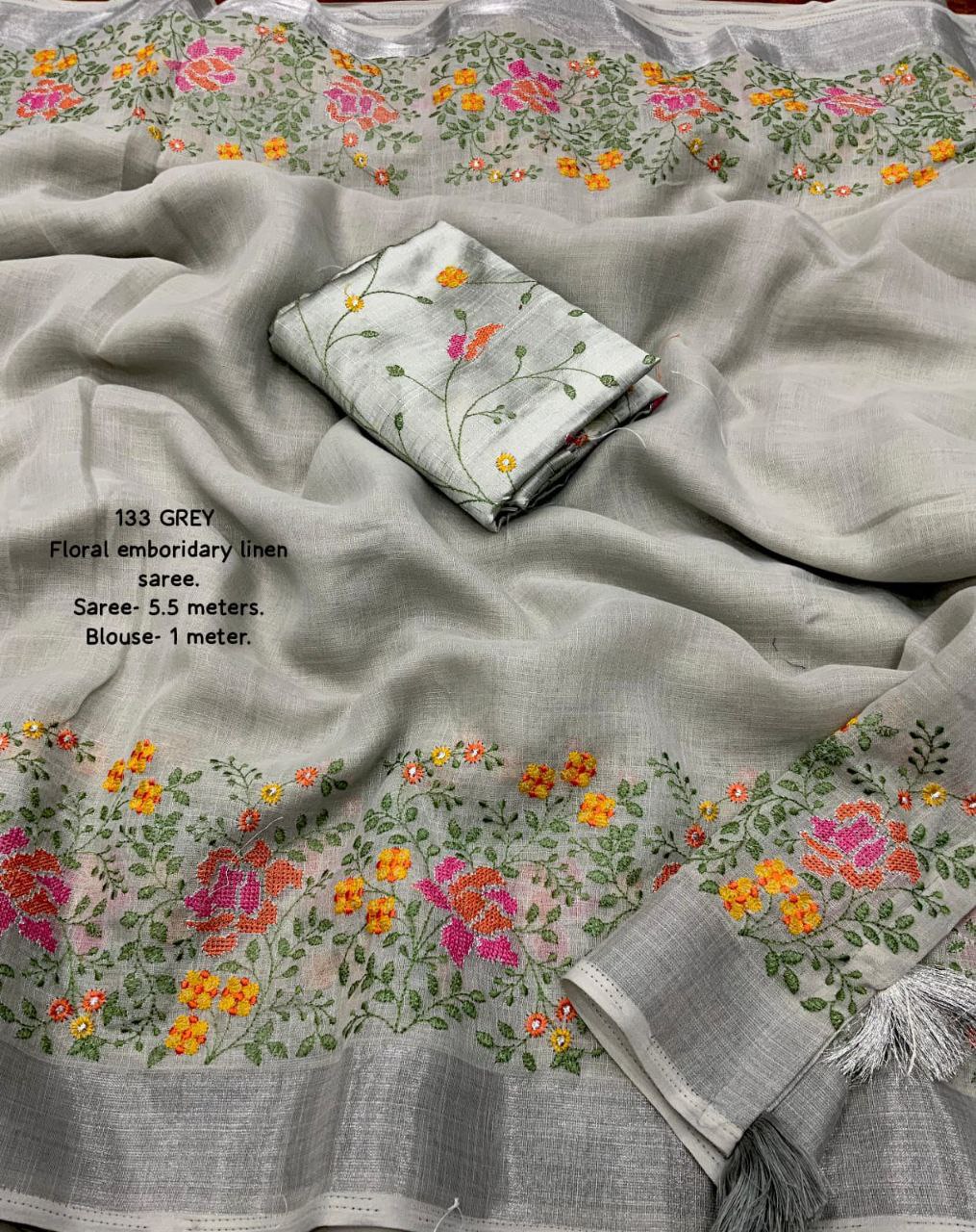 Blouse- pure plain georgette with heavy embroidery perfecy matched with saree.