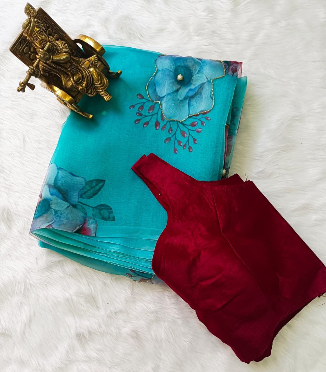 Trendy Very Soft Organza Silk Saree With Beautifull Digital Print saree