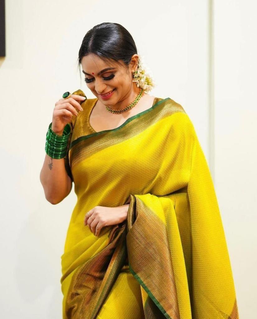 Lemon Yellow Colour Kanjivaram Woven Silk Saree With Blouse Piece